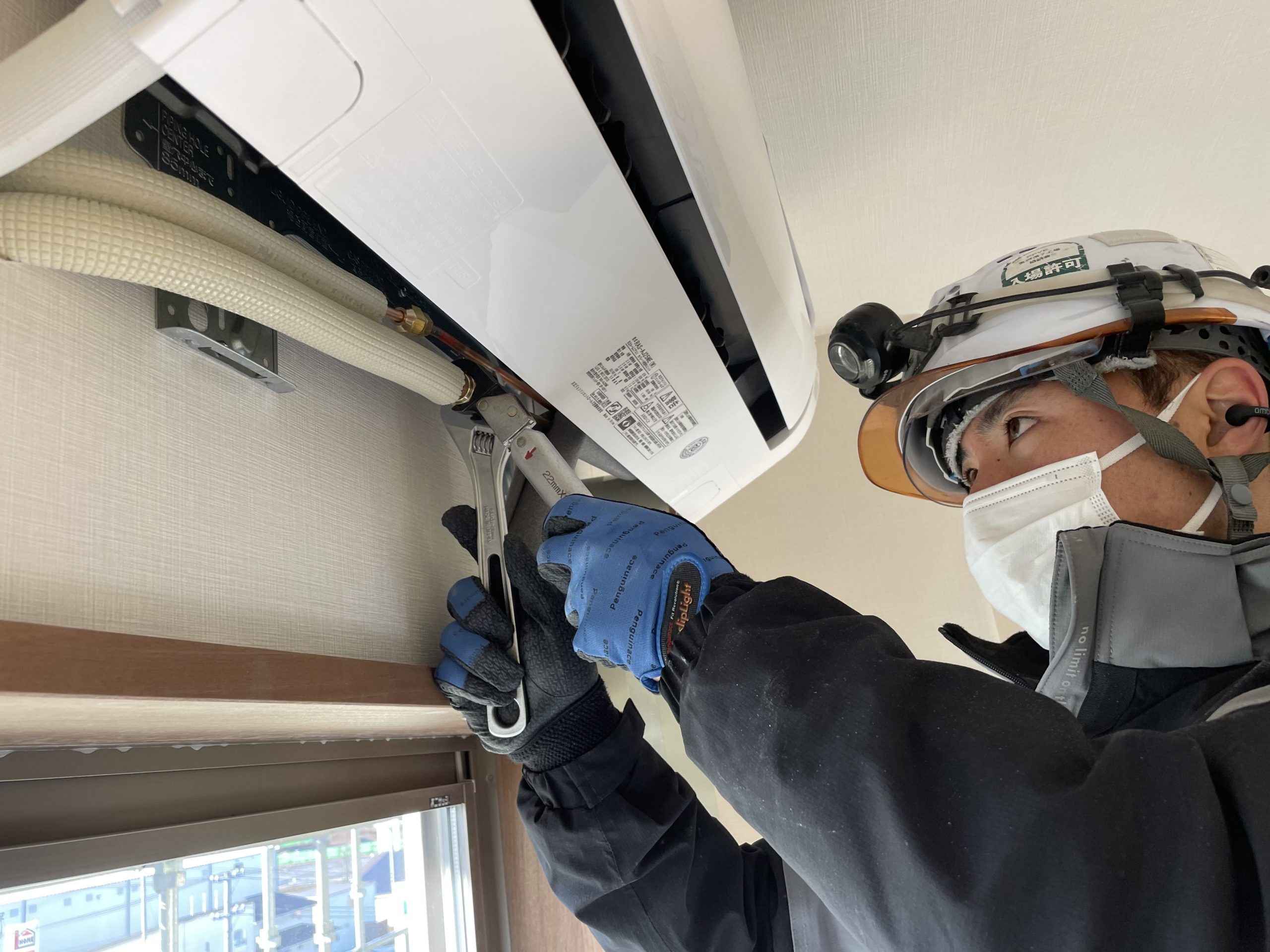 壁掛エアコンフレアー接続作業